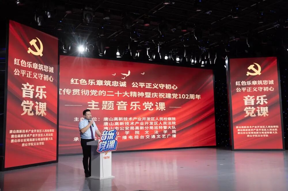 音乐党课以“红色乐章筑忠诚 公平正义守初心”为主题,《青春之我》《 理想如炬 “我们都是追梦人”》《 不忘初心 “我将无我 不负人民”》《平凡铸就伟大 “每个人都了不起”》《复兴强国 “撸起袖子加油干”》《奋斗有我》六个乐章依次展开,以歌叙史,以乐化人,用耳熟能详的红色歌曲、感人至深的影视作品,阐述百年党史的政治营养和精神瑰宝,描绘出我党在历史长河中的一幅幅气势磅礴、感天动地的壮丽诗篇,为全场党员干警师生带来一场视听盛宴。