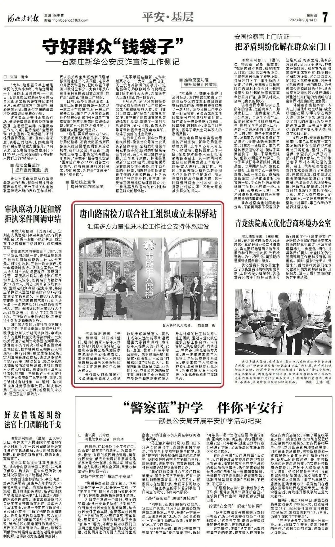 近日,唐山市首家未成年人保护法犯罪和遭受侵害为宗旨和目标,为未成年人提供交流、诉说、安抚、宣泄、教育、训诫等综合服务。未保驿站采取“检察官+司法社工+公益”的模式组建“检社团队”。检察院配备政治站位高、业务能力优、党性修养强的检察干警,同时社工中心选派了党员骨干和熟悉未成年人身心特点的社工加入司法社工团队,通过专业化队伍建设形成工作合力。未保驿站汇集检察机关、司法社工、教育部门和社会各方力量,进一步推进未成年人检察工作社会支持体系建设,提高未成年人权益保护和犯罪预防的专业化水平,为未成年人全方位保护、立体化帮教提供了实践平台。