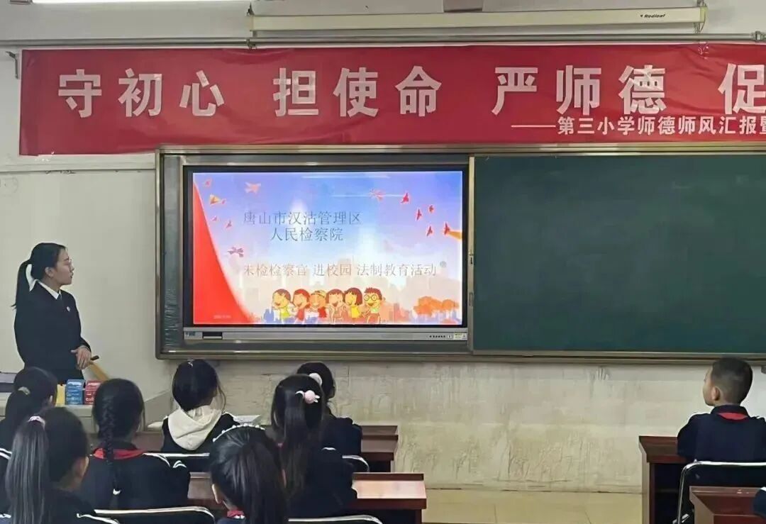 11月24日,汉沽管理区人民检察院检察官走进区第三小学,以“预防校园欺凌,共建和谐校园”为题,为60余名五六年级的孩子们送来了一场丰盛的法律大餐。检察官向同学们介绍了检察机关的职责定位,深入浅出地讲解了与青少年成长息息相关的法律知识。从发生在同学们身边的真实案例入手,通过问答的形式,引导学生说出自己的感受,教育学生遵守校规校纪,养成规则意识。