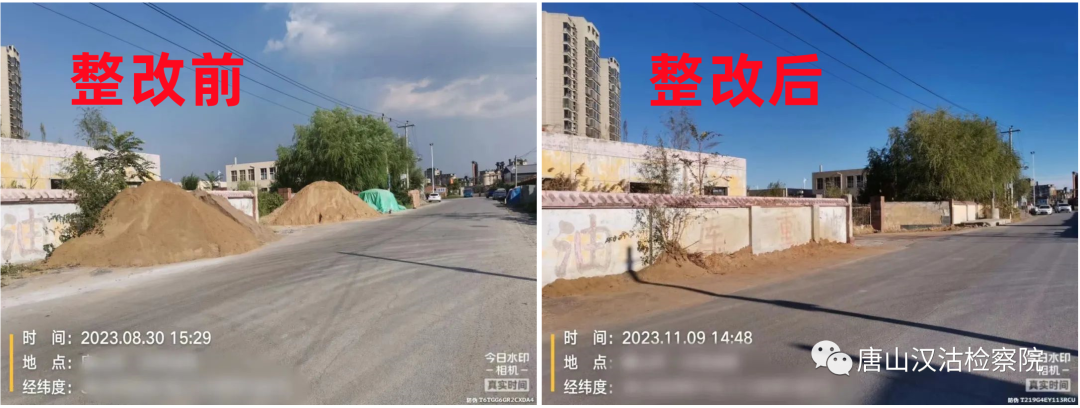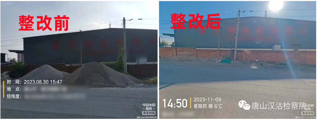今年8月下旬,汉沽院在开展“燕赵山海 公益检察”专项监督活动中发现,该区与天津市宁河区交界处的某道路两侧露天堆放着大量水泥、砂石料等建筑物料,未采取防尘密闭网进行遮盖,在自然风的作用下极易产生扬尘,污染周边环境。因案发地点位于津冀交界线处,汉沽区院遂向宁河区院通报了案件线索。经进一步调取查阅行政区划图,两地检察官确认该案点位恰好穿过两区交界线。后两地检察官同步取证,共同确认两地相关行政机关存在怠于履行行政监管职责,导致建筑物料持续阻碍交通道路、污染市容环境,致使社会公共利益受到侵害的违法事实。